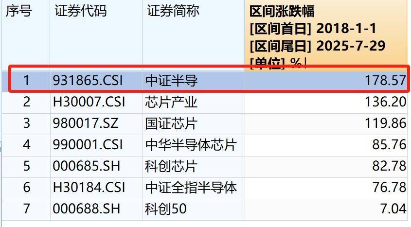 这个ETF重仓上/中游设备、材料、设计等,合计占比约90%。其跟踪的中证半导,2018年以来涨幅在7个主流半导体指数中最高:高达178%!
