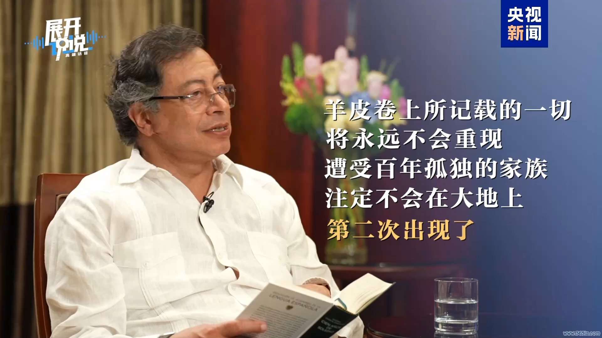 要说采访中令我印象最深的,还是佩特罗总统跟我们分享的《百年孤独》读后感。对,我们专门准备了一本西语版的《百年孤独》,他看到这本书之后非常感动,他说百年孤独不仅仅是书中各大家族的孤独,更是哥伦比亚的孤独。他还说,哥伦比亚独立之后不断经历内乱,他希望历史不要重演,要永远摆脱暴力,真正摆脱“百年的孤独”。最后他还深情地强调了一句,哥伦比亚需要更多的爱来发展。