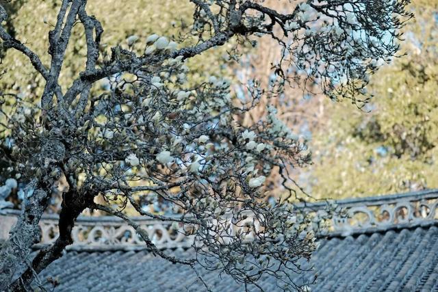 我去的时候,恰逢院内两棵古玉兰树盛开的,显得更加高雅。有一位在本地旅居的朋友告诉我,在巍宝山是可以和道长讨茶喝的,当然也可以随喜一些茶钱,喝的是山里的野生茶。