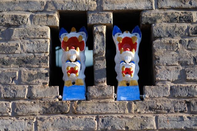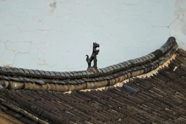 它造型夸张,大嘴怒张、獠牙森然,眼睛圆睁,头顶还带个「王」字——乍看像猫,实则是「寓虎于猫」,因此瓦猫又有「镇脊虎」「降脊虎」「吉祥虎」等别名。