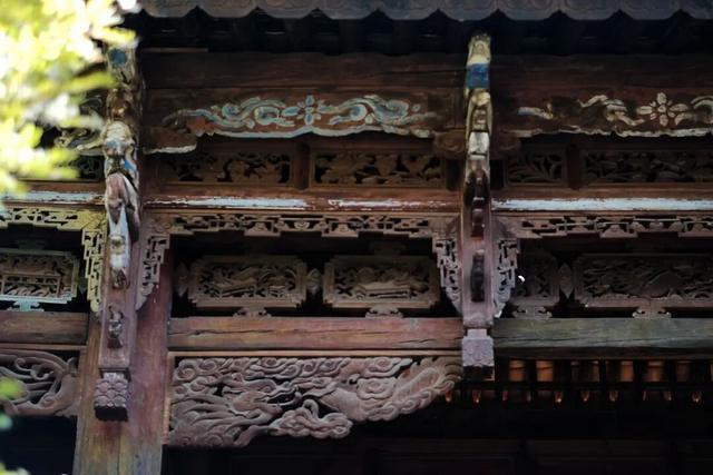 亭台楼阁、牌坊照壁、廊桥水榭,依地势巧妙布局,移步换景,处处讲究。梁枋上的彩绘、檐角的砖雕、栏杆的石作,都不是粗制滥造的仿古,而是真正的老手艺。线条流畅、题材丰富、色彩沉稳,经得起凑近了细看。