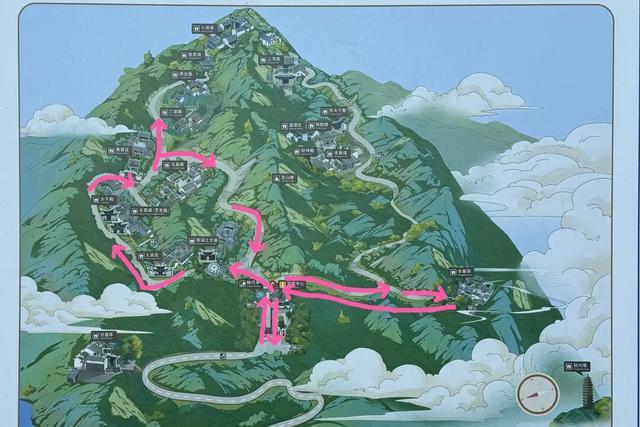 这个路线可以理解为L型。先从进山的台阶上山,依次参观各个宫观(我是参观完玉皇阁下山的,体力好的可以挑战斗姥阁);然后下山回到山门处,向右手边的小路行进,前往长春洞,最后原路返回就可以了。