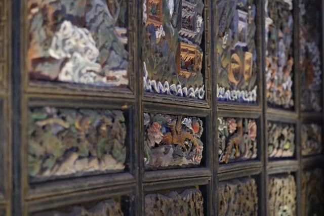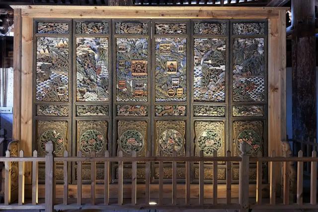 大殿内展出的明伦堂隔扇门,是六扇完整精美的明代木雕杰作。