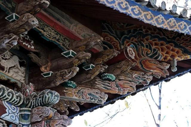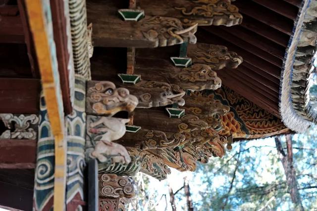 太阳宫就是等觉寺的核心建筑。这座主殿建于明永乐十六年(1418年),面阔五间、进深四间,单檐歇山顶,四周设廊。正面及两侧檐下施重昂五踩斗拱,后檐以垂柱花板作装饰,用料粗大,庄重古朴,带有明显的宋代建筑遗风。
