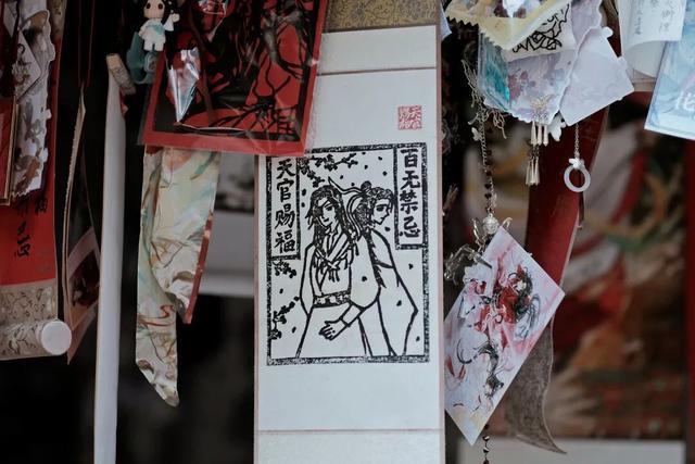 道友们也是非常包容,不仅没有禁止年轻人的打卡,还给出了足够的空间,到处都贴满了小卡。「天官赐福,百无禁忌」这句话,如今也成了太子殿的标志性符号。