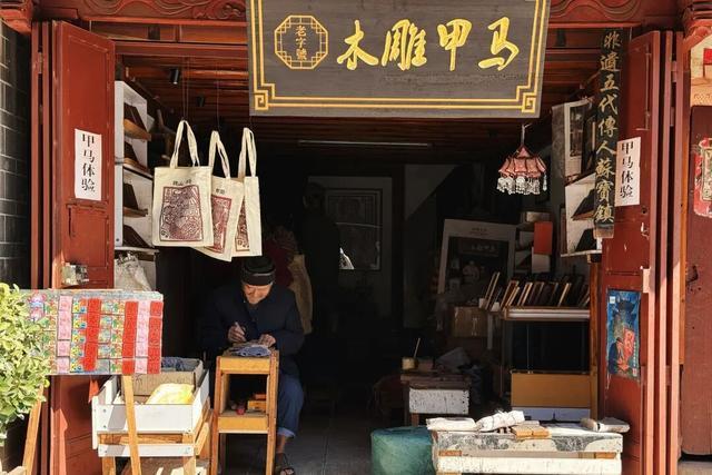 每一幅甲马都由老艺人手工木刻,线条粗犷有力,带着浓郁的乡土气息。古城里如今仍有甲马传习所,你可以现场观看刻版、拓印的过程,也可以亲手印一张带回家。
